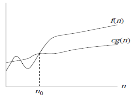 - n ≥ n0인 모든 n에 대해 0 ≤ f(n) ≤ c g(n)인 양의 상수 c와 n0가 존재함